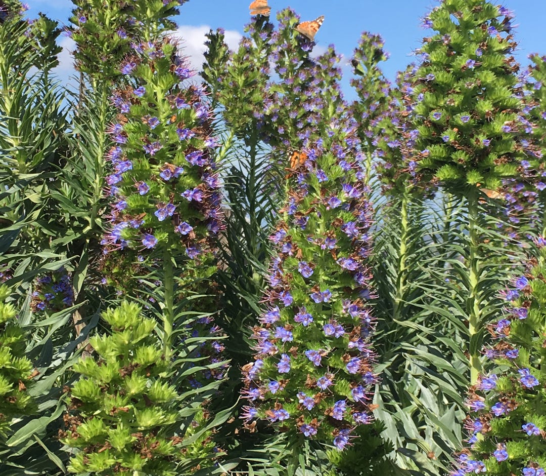 American Lady (Vanessa virginiensis) on Pride of Madeira plant