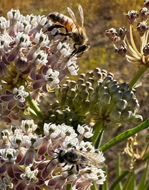 Western honey bee (Apis mellifera) & Native stingless bee (Meliponini) on California Milkweed